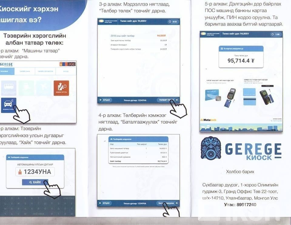Улаанбаатар Хотын Банк, Метатек компани хамтран “ГЭРЭГЭ” цахим төлбөрийн машиныг анх удаа хэрэглээнд нэвтрүүлж, өнөөдөр нийслэлийн Үйлчилгээний нэгдсэн төвийн Дүнжингарав салбарт нээлтээ хийлээ. Нээлтэд нийслэлийн Мэдээллийн технологийн газрын дарга О.Чинзориг, нийслэлийн Татварын газрын дарга Д.Мөнх-Учрал зэрэг албаны төлөөллүүд оролцлоо. Эхний ээлжинд Тээврийн Хэрэгслийн татвар болон Торгуулийг төлөх боломжтой болж байгаа юм. Цаашдаа 30 гаруй төрийн үйлчилгээг үзүүлэхээр зорин ажиллаж байгаа юм байна.