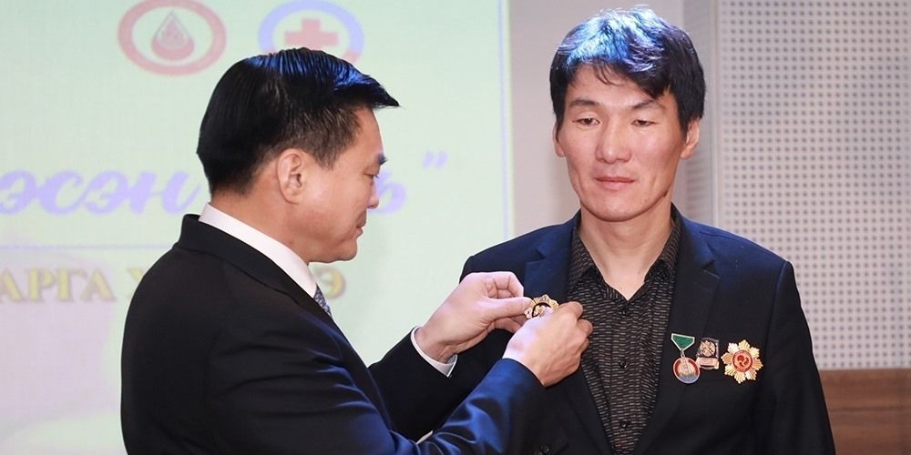 Хүндэтгэлийн арга хэмжээний үеэр 220 удаа цусаа бэлэглэсэн Алтан донор иргэн Д.Бум-Эрдэнэд нийслэлийн дээд шагнал болох “Хангарди” одонг хотын Захирагч С.Амарсайхан гардуулж, нийслэлчүүдийн өмнөөс талархал илэрхийллээ.