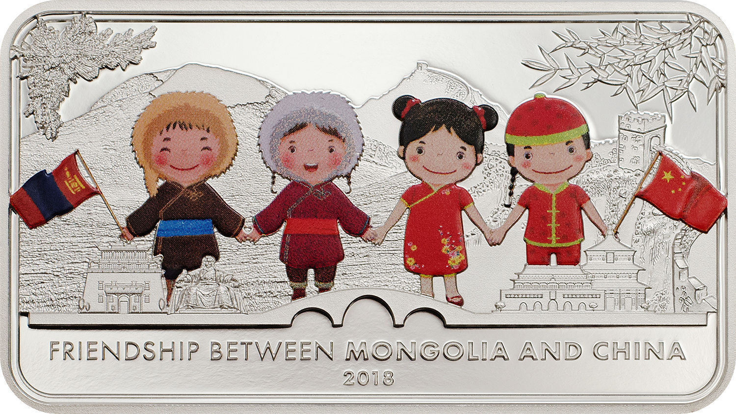 Монгол Улсын дипломат харилцаа бүхий Оросын Холбооны Улс, Бүгд Найрамдах Хятад Ард Улс, Япон Улс, Бүгд Найрамдах Солонгос Улсын олон улсын хамтын ажиллагааг илэрхийлсэн тэгш өнцөгт хэлбэртэй мөнгөн зоос худалдаанд гарчээ.