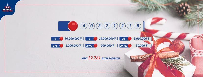 НӨАТ-ын урамшууллын өнөөдрийн тохирлоор 10 сая төгрөгийн хоёр, 5 саяын 25 азтан тодорлоо. Нийт 22.761 азтан тодорсон байна. Тохиролд 40321218 дугаар тодорсон бөгөөд: