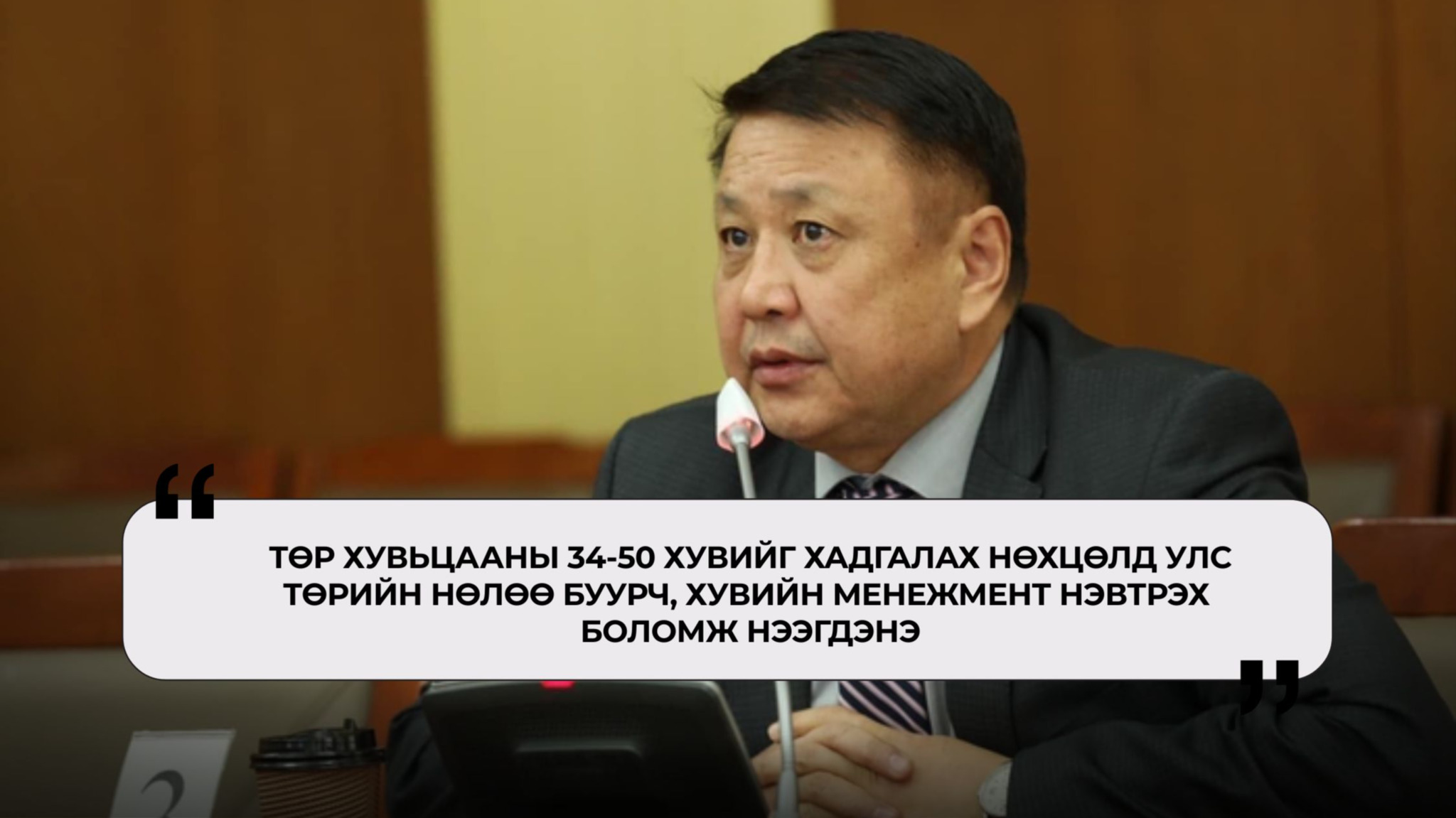 Хувьчлалын тухайд гэвэл, 2016 оноос хойш 2018 онд Төрийн банк, МИАТ, Монголын Хөрөнгийн бирж гэх мэт 27 ТӨК-ийг хувьчлах жагсаалт гарсан. Таг чиг болсон. Дараа нь 2022 оны төсөвт Засгийн газраас 36 ТӨК-ийн 34 хүртэлх хувийг хувьчлах, заримыг нь нэгтгэх, татан буулгах жагсаалт гарсан бас л таг чиг болсон. Одоо 18 компанийн жагсаалт гарчээ. Өмнөх шигээ таг чиг битгий болчихоосой гэж хүсэж байна. Гэхдээ МАН дангаараа Засгийн эрхэнд байхдаа сөрөг хүчний хяналтгүйгээр ийм арга хэмжээ бие даан авч хэрэгжүүлж чадах болов уу гэсэн эргэлзээ төрж байна. Өнөөдөр ТӨК-ийн засаглал мэргэжлийн бус, намчдаар дүүрсэн байгаа. Мөн авлига, ашиг сонирхлын зөрчил эндээс ундарч байгаа нь нууц биш. Тэр бүү хэл улс төрийн намуудад ил, далдаар хандив мөнгө өгөх, сонгуульд ашиглах байдал хэрээсээ хэтэрсэн. Иймээс хувьчлалыг хоёр гараа өргөж дэмжинэ.