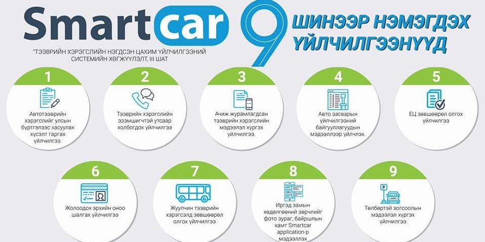 Цаашид Нийслэлийн Мэдээллийн технологийн газраас холбогдох байгууллагуудтай хамтран Smartcar.mn системд нэмэлт хөгжүүлэлтийг хийж 9 төрлийн үйлчилгээг шинээр хэрэглээнд нэвтрүүлэхээр ажиллаж байна. Үүнд: