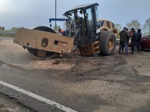 СЭРЭМЖЛҮҮЛЭГ: Ачиж явсан механизм нь тэвшнээс унаж, замын зорчих хэсгийг эвдэлжээ