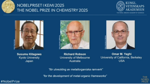 Японы химич Китагава Сусумү, Америкийн химич Ричард Робсон, Омар М.Яги нар энэ оны химийн салбарын Нобелийн шагналын эздээр тодорлоо. Энэхүү шагналыг металлорганикийн шинэ нэгдлүүдийг үүсгэснийх нь төлөө тэдэнд олгохоор шийдвэрлэжээ.