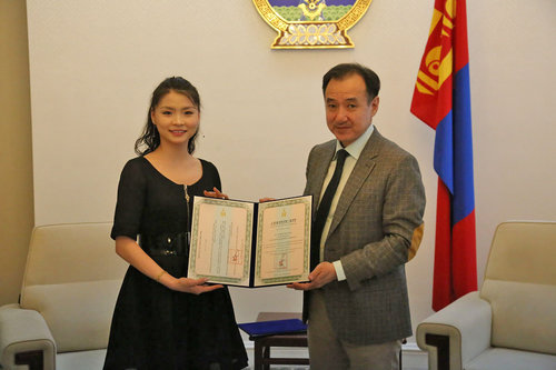 Гадаад харилцааны сайд Д.Цогтбаатар Монгол Улсын Соёлын элчээр томилогдсон гавьяат жүжигчин, балетчин Отгонтөгсийн Анужин, Монгол Улсаас ОХУ-ын Красноярск хотод суух Өргөмжит консул Евгений Алексеевич Кузьмин нарт Монгол Улсын Соёлын элчийн гэрчилгээг гардуулан өгөв.