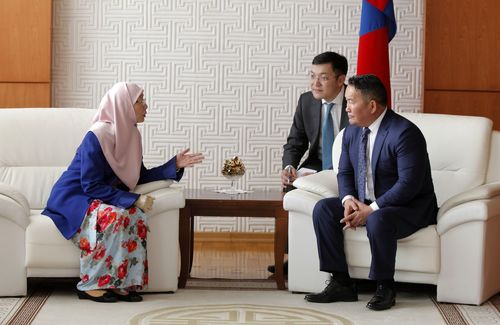 Гамшгийн эрсдэлийг бууруулах Азийн сайд нарын бага хуралд оролцохоор Монгол Улсад хүрэлцэн ирсэн Малайз улсын Шадар сайд, хатагтай Дато Се Азаза Ван Исмайл Монгол улсын Ерөнхийлөгч Х.Баттулгад бараалхлаа.