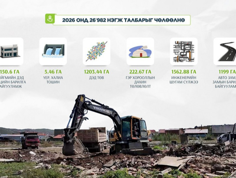 Газар чөлөөлөлтийн бэлтгэлийг хангах үүргийн дагуу нийслэлийн 2026 оны газар зохион байгуулалтын төлөвлөгөөнд дөрвөн бүлгийн 14 дэд бүлэгт хамаарах 793 төсөл арга хэмжээг хэрэгжүүлэхээр тусган, батлуулсан. Үүнээс 2026 онд 341 төсөл, арга хэмжээний 26982 нэгж талбарын 4344,05 га газрыг нөхөн олговортойгоор чөлөөлөхөөр бэлтгэл хангаж байна.