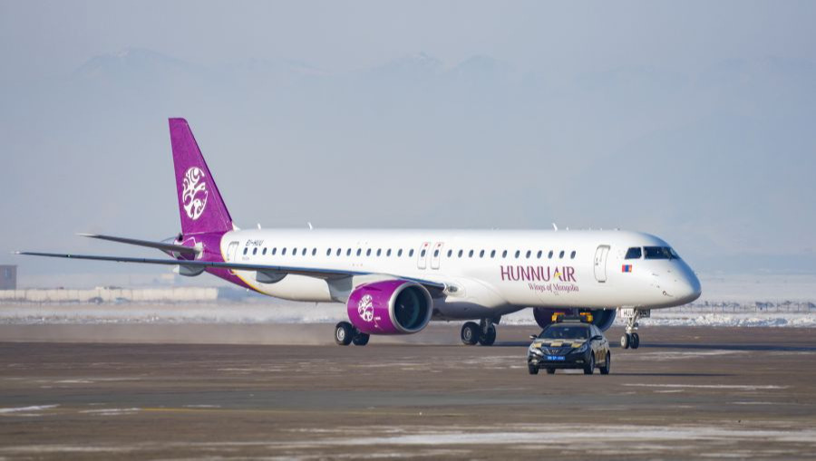 Монгол Улсын агаарын тээврийн “Хүннү Эйр” компани нислэгтээ ашиглахаар Е195-Е2 төрлийн шинэ хөлгөө үйлдвэрлэгчээс нь шууд хүлээн авч Монгол Улсдаа авчирчээ.