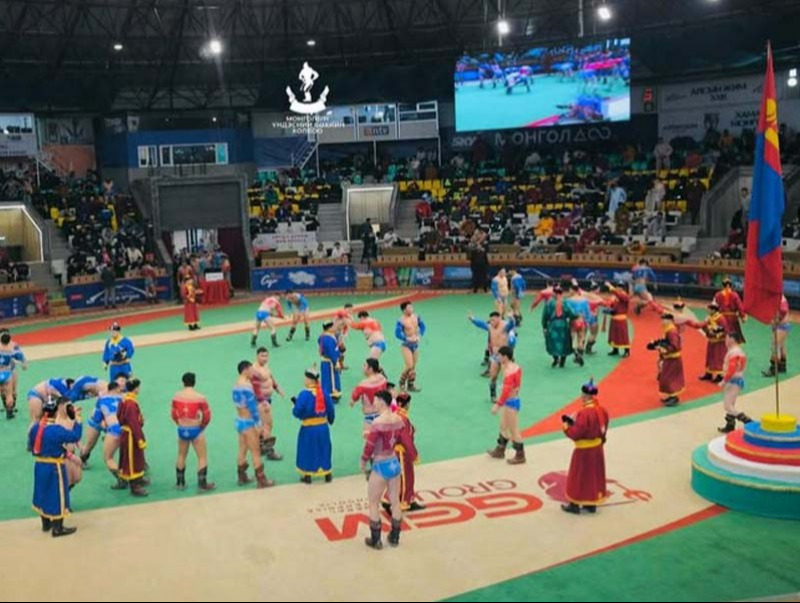 Өнөөдрийн барилдааны зүүн талын тэргүүн магнайд Булган аймгийн Гурванбулаг сумын харьяат сумын заан Гантөмөрийн Баянмөнх, баруун талын тэргүүн магнайд Баянхонгор аймгийн Баянлиг сумын харьяат, сумын заан Шийрэвдоржийн Эрдэнэбаяр тэргүүтэй бөхчүүд зодоглож байна.
