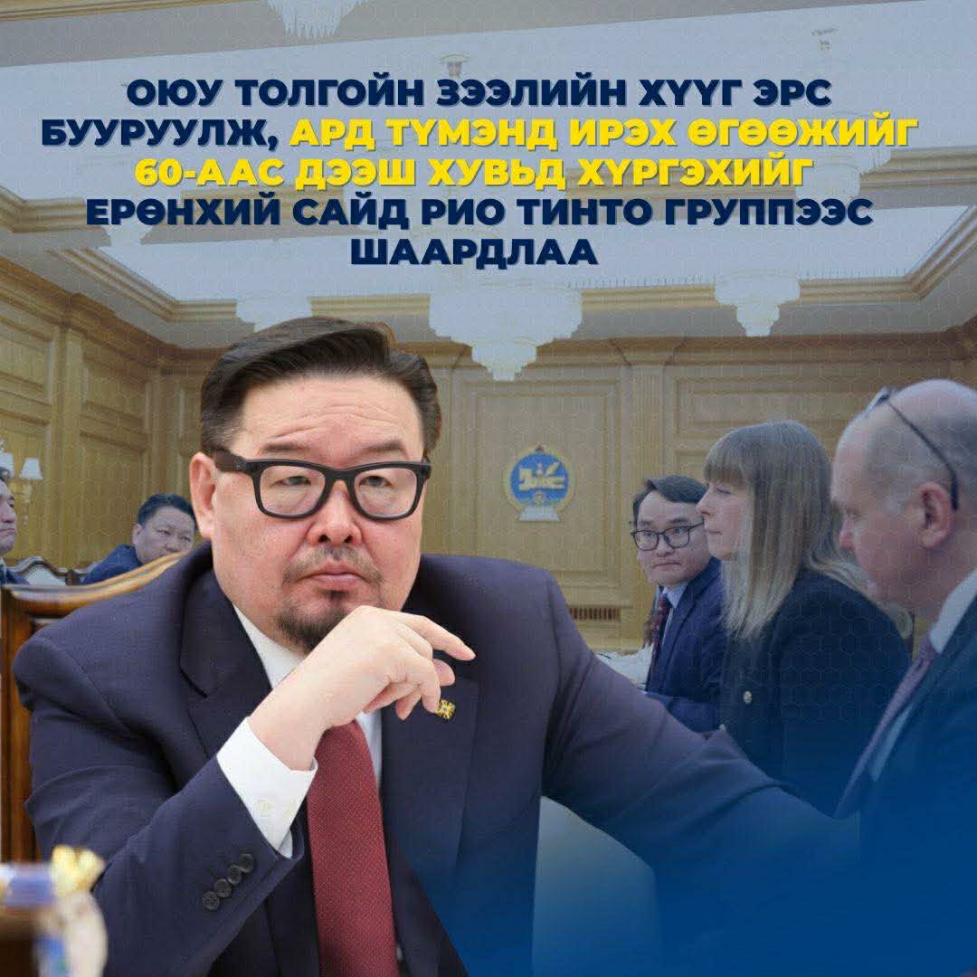 Оюу Толгойн зээлийн хүүг эрс бууруулж, Монголын ард түмэнд ирэх өгөөжийг 60-аас дээш хувьд хүргэхийг Ерөнхий сайд Рио Тинто группээс шаардлаа.