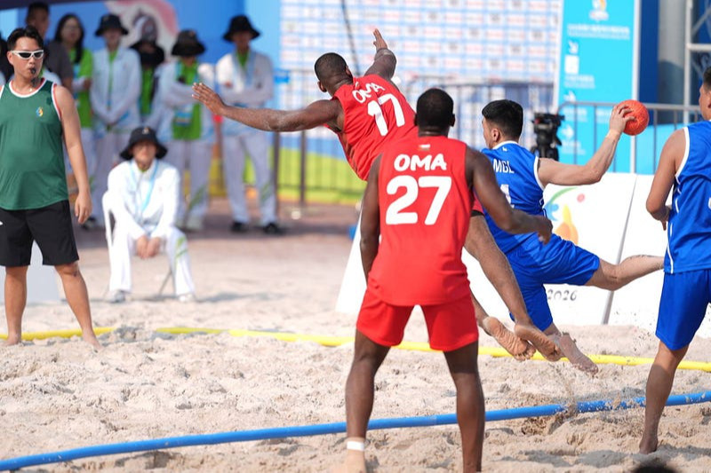 Монголын гандболын баг тамирчид Азийн элсний наадмын тэмцээнд оролцож, хэсгийн эхний тоглолтоо хийлээ. Б хэсэгт багтсан манай баг эхний учраагаа Оманы шигшээ багтай хийж, 0:2 харьцаатайгаар ялагдал хүлээлээ.