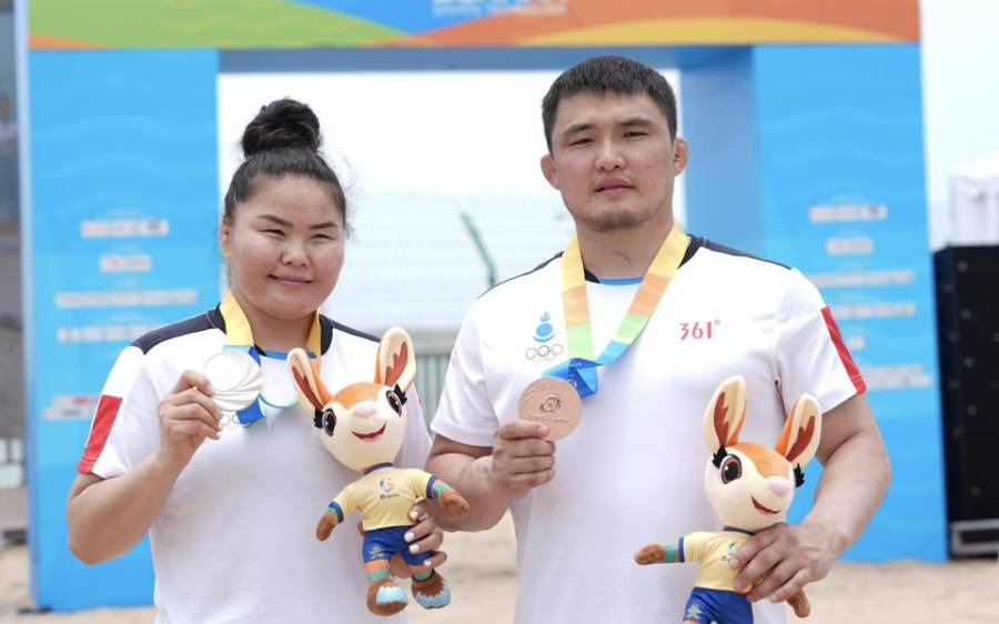 Азийн элсний спортын VI наадмын элсний бөхийн төрөлд Монголын баг тамирчид хоёр медаль хүртлээ.