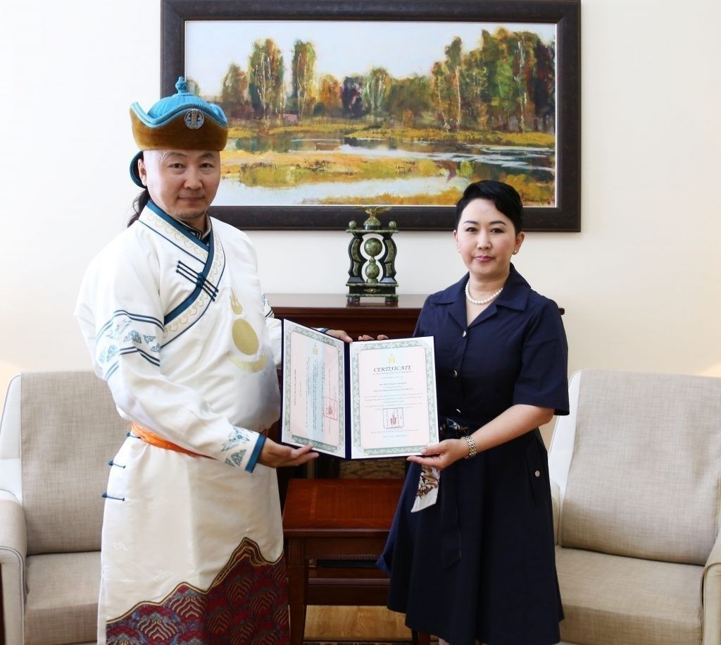 Туульч, хуурч, хөөмийч Эрдэнэцогтын Баатаржавт Монгол Улсын Соёлын элчийн гэрчилгээг Гадаад харилцааны Дэд сайд Б.Батцэцэг энэ сарын 6-ны өдөр гардуулан өгчээ.