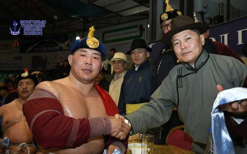 Үндэсний бөхийн "Алтан цом"-ын цуврал барилдаан өндөрлөж, улсын арслан Э.Батмагнай 40 даваа авснаар манлай бөхөөр өргөмжлөгдлөө.